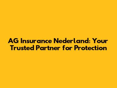 AG Insurance Nederland: A Comprehensive Guide