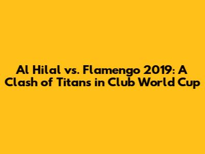 Hey sports fanatics! Let's rewind to a thrilling match that had everyone on the edge of their seats – Al Hilal vs. Flamengo in the 2019 FIFA Club World Cup. This wasn't just any game; it was a showdown between two football powerhouses, each bringing their A-game to the field. If you're into match analysis, key moments, team performance, and overall football highlights, then buckle up! We're diving deep into this epic encounter, exploring the strategy, tactics, and player statistics that made this game a memorable one. So, grab your snacks, settle in, and let's relive the magic of this incredible match!