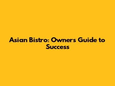 Asian Bistro: Owner's Guide To Success