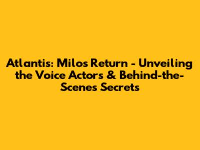 Atlantis: Milo's Return - Voice Actors & Behind-the-Scenes Secrets