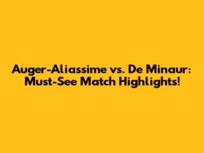 Auger-Aliassime Vs. De Minaur: Must-See Match Highlights!