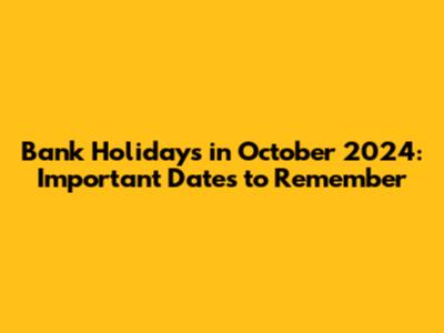 Bank Holidays In October 2024: Important Dates To Remember