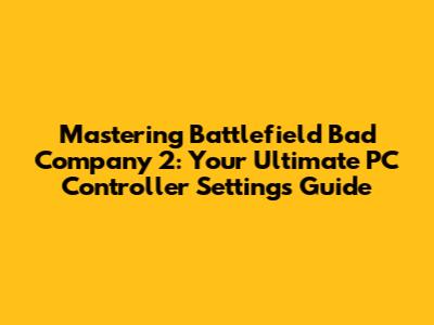 What's up, gamers! Today, we're diving deep into one of the most beloved entries in the Battlefield series: Battlefield Bad Company 2. If you're like me and prefer the tactile feel of a controller over a mouse and keyboard, especially for those intense firefights, then you're in the right place. Getting your controller settings dialed in on PC can be a game-changer, transforming your experience from frustrating to flawless. We'll cover everything from basic button mapping to fine-tuning sensitivity and aiming to ensure you have the edge over your opponents. So grab your favorite gamepad, settle in, and let's get your Battlefield Bad Company 2 PC controller settings optimized for maximum fragging potential!