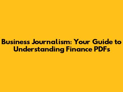 Business Journalism: Your Guide To Understanding Finance PDFs