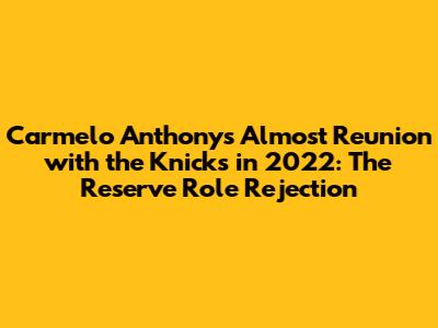 Hey guys! Remember Carmelo Anthony? The scoring machine, the Melo we all loved to watch? Well, get this: in 2022, there was a serious chance he could have rejoined the New York Knicks! Can you imagine Melo back in the orange and blue? It almost happened, but there was a catch. Let's dive into the details of why Carmelo Anthony nearly became a Knick again, and why he ultimately decided to pass on the opportunity. This is a story about legacy, roles, and a player knowing his worth. It's a story about what could have been.