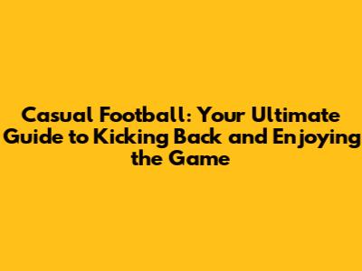 Casual Football: Your Guide To Kicking Back And Enjoying The Game