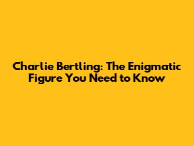 Charlie Bertling: The Enigmatic Figure You Need To Know