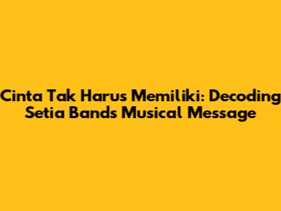 Hey guys, let's dive into the world of Setia Band, specifically their iconic song "Cinta Tak Harus Memiliki" (Love Doesn't Always Mean Having). This tune isn't just a catchy melody; it's a deep dive into the complexities of love, loss, and the bittersweet nature of relationships. We'll unpack the lyrics, explore the emotional core of the song, and maybe even find some relatable moments from our own lives. Buckle up, because we're about to embark on a musical journey!