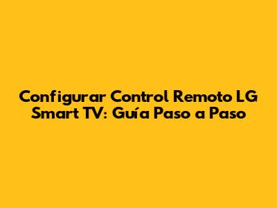 Configurar Control Remoto LG Smart TV: Guía Paso A Paso
