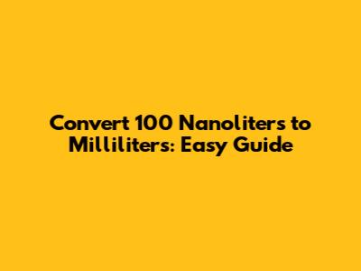 Convert 100 Nanoliters To Milliliters: Easy Guide
