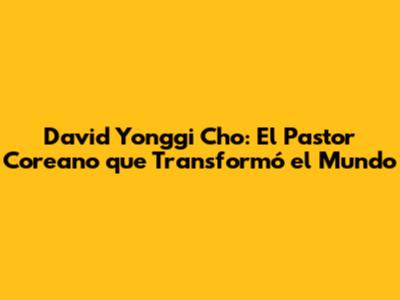 David Yonggi Cho: El Pastor Coreano Que Transformó El Mundo