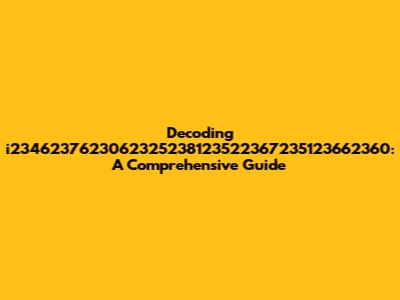 Alright, let's start with the million-dollar question: What the heck is i2346237623062325238123522367235123662360? Well, the truth is, this isn't a universally recognized term or concept. The string appears to be a long sequence of numbers, which on its own doesn't inherently have a defined meaning. It could represent a variety of things, depending on the context in which it's used. For example, it could be a: