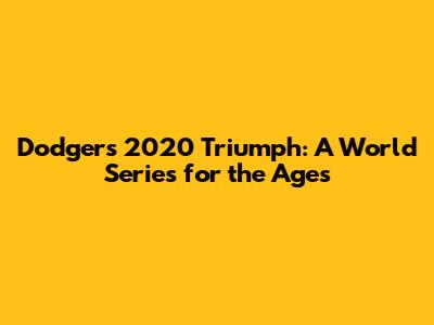 Dodgers' 2020 Triumph: A World Series For The Ages
