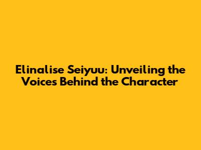 Hey everyone! Today, we're diving deep into the fascinating world of anime voice acting, specifically focusing on the beloved character, Elinalise. You know, the one with the distinctive personality and unforgettable lines? Well, behind every great character is an equally talented individual bringing them to life. So, let's explore who the Elinalise seiyuu are and what makes their performances so special.
