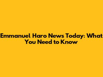 Emmanuel Haro News Today: What You Need To Know