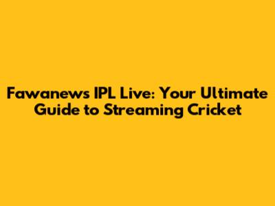Fawanews IPL Live: Your Ultimate Guide To Streaming Cricket