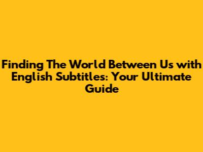Where to Find 'The World Between Us' with English Subtitles