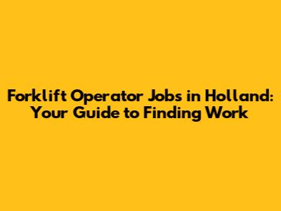 Forklift Operator Jobs In Holland: Your Guide To Finding Work