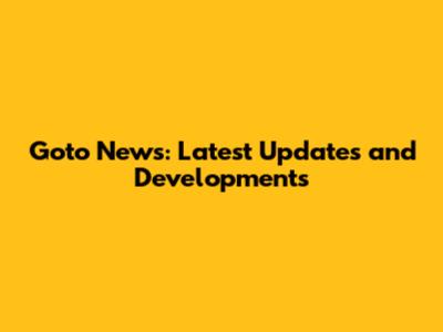 Goto News: Latest Updates And Developments
