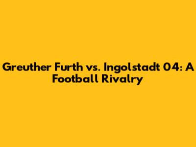 Greuther Furth Vs. Ingolstadt 04: A Football Rivalry