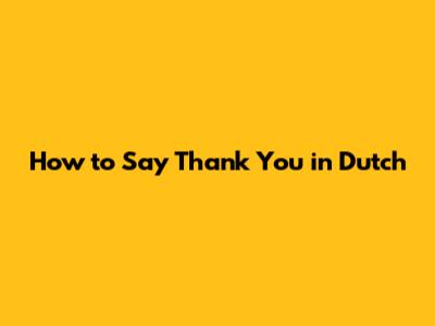 How To Say Thank You In Dutch