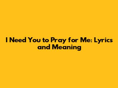 I Need You To Pray For Me: Lyrics And Meaning