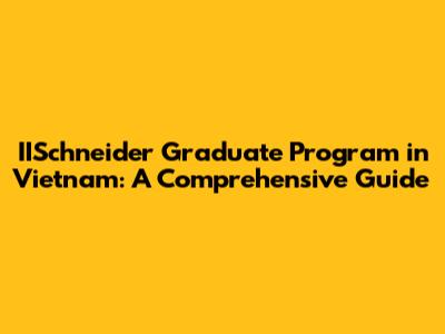 IISchneider Graduate Program In Vietnam: A Comprehensive Guide