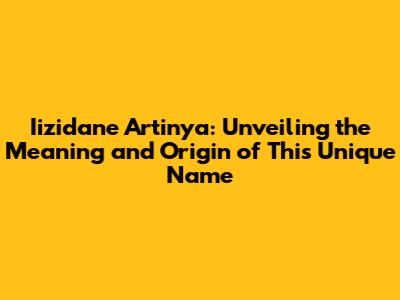 Iizidane: A Name That Resonates with Individuality
