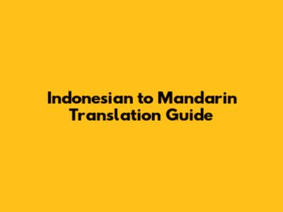 Indonesian To Mandarin Translation Guide