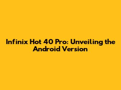 Infinix Hot 40 Pro: What Android Version?
