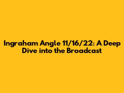 Hey everyone! Let's break down the Ingraham Angle from November 16, 2022. This particular episode, like many others, stirred up a lot of discussion, and it's worth taking a closer look at what was said, why it mattered, and the broader context in which it took place. So, grab your coffee (or your beverage of choice), and let's get into it! We'll cover the main topics, dissect some of the key arguments, and try to give you a clear picture of what made this broadcast stand out. It's always a good idea to stay informed, and hopefully, this breakdown will help you do just that.