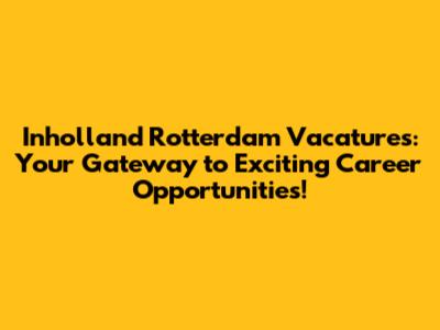 Inholland Rotterdam Vacatures: Find Your Dream Job