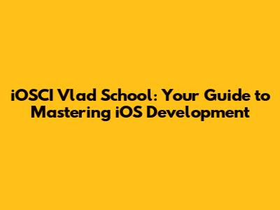 IOSCI Vlad School: Your Guide To Mastering IOS Development