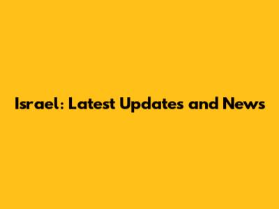 Israel: Latest Updates And News