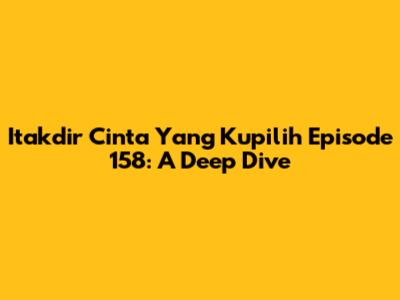 Hey guys! Let's dive straight into Itakdir Cinta Yang Kupilih, specifically breaking down all the feels and drama from episode 158. We're going to unpack everything, from the plot twists that left us hanging to the character developments that had us cheering (or maybe screaming at the TV β no judgment here!). Get comfy, grab your snacks, and let's get started!