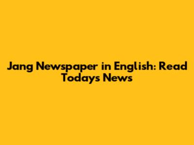Jang Newspaper In English: Read Today's News