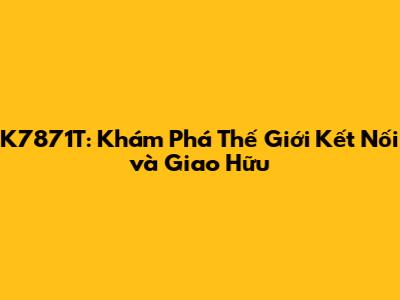 K7871T: Kết Nối, Giao Hữu Và Những Mối Quan Hệ Bền Vững