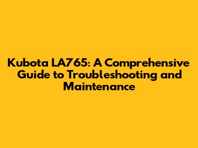 Kubota LA765: Troubleshooting & Maintenance Guide