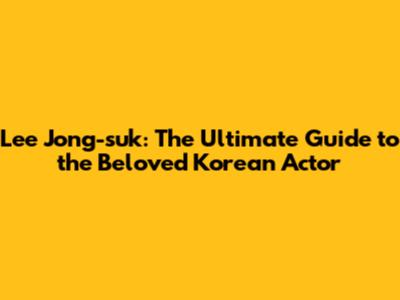 Lee Jong-suk: The Ultimate Guide To The Beloved Korean Actor