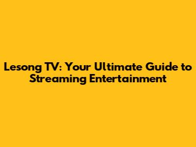 Lesong TV: Your Ultimate Guide To Streaming Entertainment