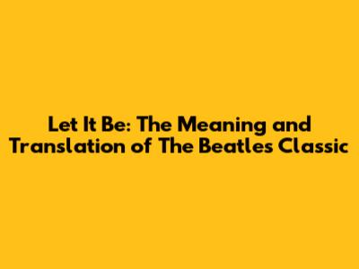 Let It Be: The Meaning And Translation Of The Beatles' Classic