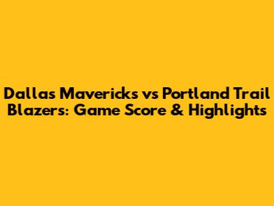 Mavericks Vs. Trail Blazers: Game Score & Highlights
