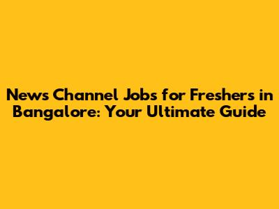 News Channel Jobs For Freshers In Bangalore: Your Guide