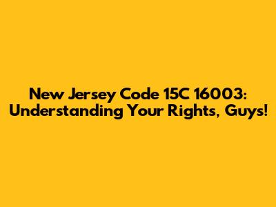 Hey there, folks! Let's dive into something super important that might affect you if you're in New Jersey: New Jersey Code 15C 16003. Now, I know legal stuff can sound super dry, but trust me, understanding this code can be a real game-changer. It's all about your rights, and who doesn't want to be in the know about that, right? We're going to break it down in a way that's easy to digest, so buckle up and let's get started on this journey to legal enlightenment.