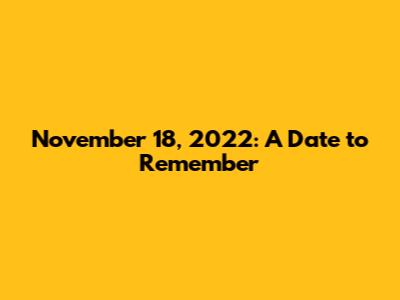 November 18, 2022: A Date To Remember