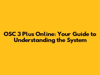 OSC 3 Plus Online: Your Guide To Understanding The System