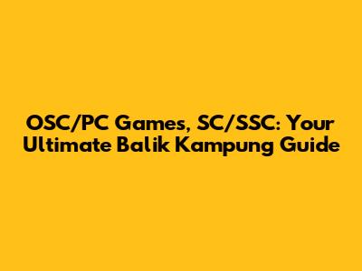 OSC/PC Games, SC/SSC: Your Balik Kampung Guide