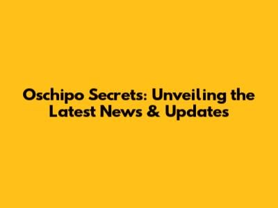Oschipo Secrets: Unveiling The Latest News & Updates