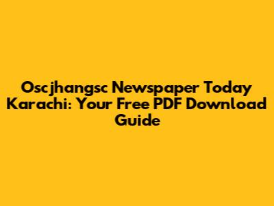 How to Get Your Oscjhangsc Newspaper Today Karachi PDF
