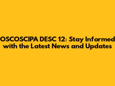 OSCOSCIPA DESC 12: Latest News And Updates